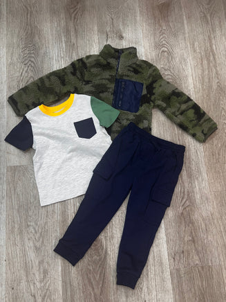 3 pc set: Joggers, shirt, sherpa jacket