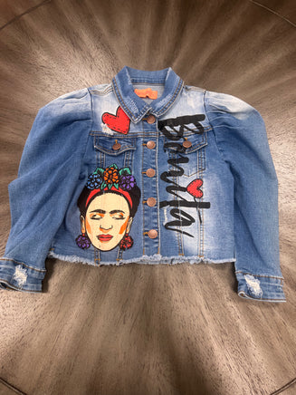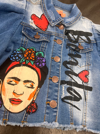 The perfect confidence building jacket on the market! With printed design that expresses individuality with puffer broad shoulders. This denim jacket matches with any pair jeans on the market which makes it easy to mix and match.
