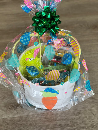 •Each basket has a variety of chocolate candies, plastic eggs, egg decoration kit, toys , such as a harmonica and more!